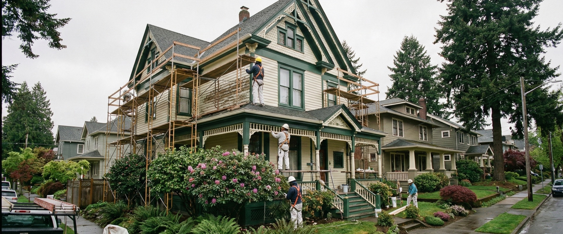 The ideal exterior painting season in Portland is May through October when we have consistent dry weather and temperatures above 50°F. We monitor forecasts carefully and won't paint if rain is expected within 24 hours.